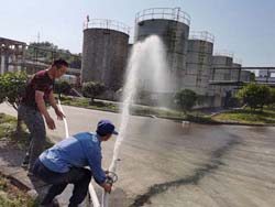 根據(jù)企業(yè)應(yīng)急預(yù)案要求及安全計(jì)劃安排,安全上樹立憂患意識(shí),做到常備不懈;5月12日公司安環(huán)部組織當(dāng)班操作工、動(dòng)力部安環(huán)部、生產(chǎn)部、倉管人員進(jìn)行重大危險(xiǎn)源噴泡沫應(yīng)急演練。