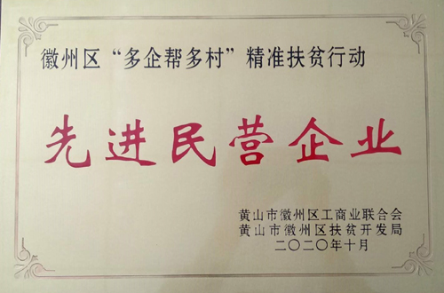 2020年10月13日,區(qū)工商聯(lián)、區(qū)扶貧開發(fā)局聯(lián)合在呈坎鎮(zhèn)容溪碼頭農(nóng)產(chǎn)品展銷會上舉行“多企幫多村”精準(zhǔn)扶貧行動先進民營企業(yè)表彰大會。包括我公司在內(nèi),徽州區(qū)共有20家企業(yè)獲此殊榮。