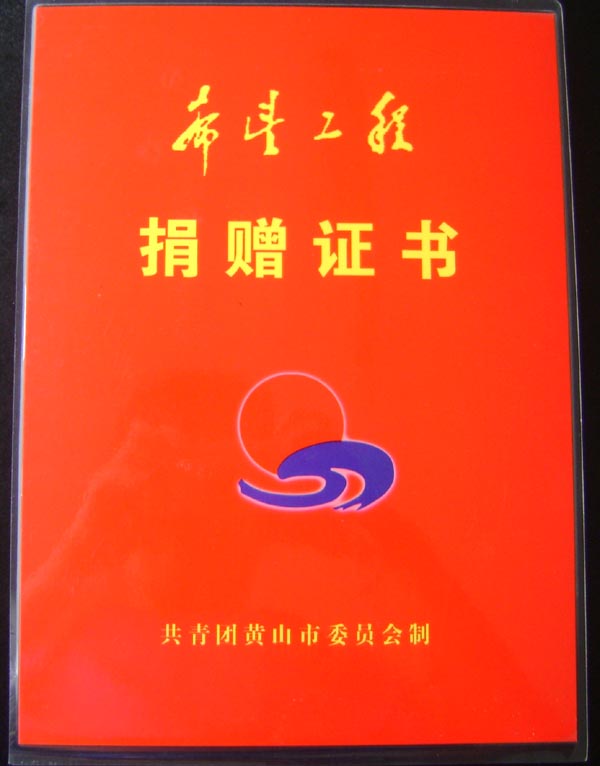 希望工程捐贈證書2